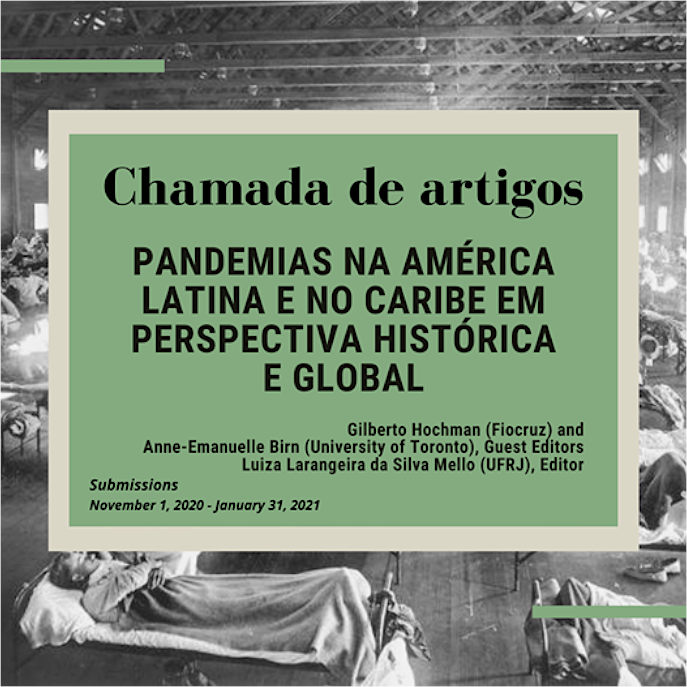 Como editores convidados do dossiê especial sobre pandemias de Topoi. Revista de História, receberemos artigos originais em inglês, espanhol e português que abordem o tema “Pandemias na América Latina e Caribe em Perspectiva Histórica e Global” a serem publicados no número de setembro a dezembro de 2021 (volume 22, número 48).