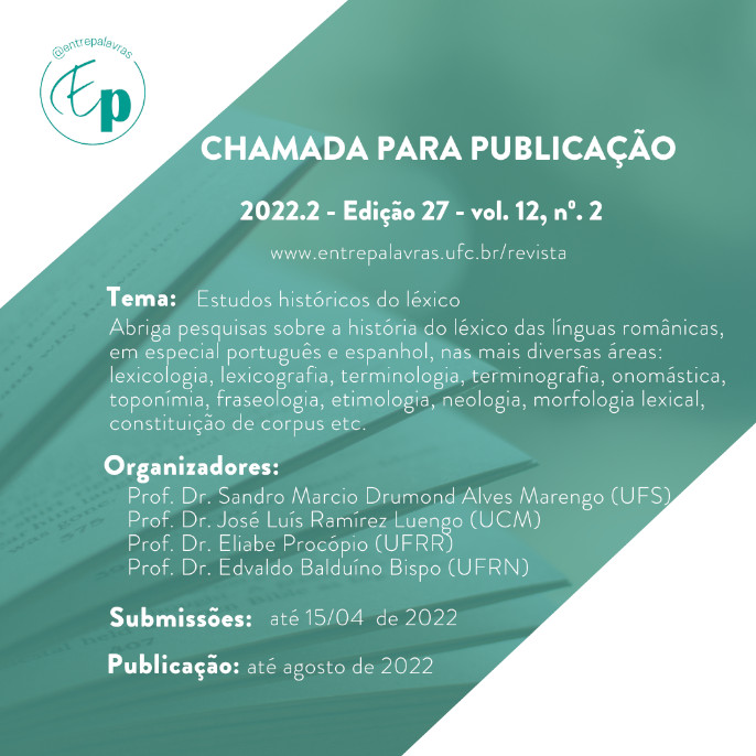 Entrepalavras, revista de linguística da Universidade Federal do Ceará, Brasil (Qualis Capes 2016 B1) anuncia as chamadas para a edição 2022.2, dedicada aos estudos históricos do léxico.