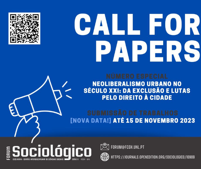 A Revista Fórum Sociológico tem uma chamada aberta para artigos no âmbito de um número especial sobre neoliberalismo urbano a ser publicado no 1º semestre de 2024.