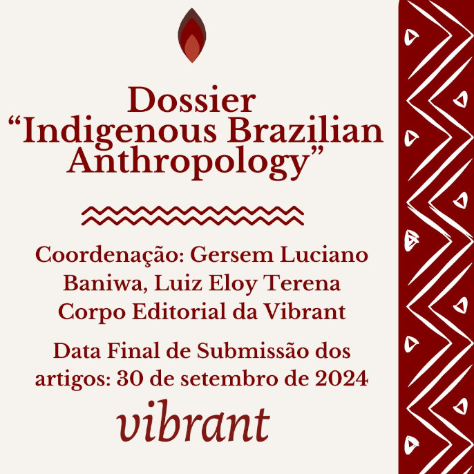 Trabalhar em prol de uma melhor divulgação e mais plural da produção brasileira em antropologia, que se diversifica, expande e enriquece com olhares descentrados é o intuito deste dossiê. Nesse sentido, a fim de mitigar as desigualdades étnico-raciais que marcam a composição do coletivo de autores do periódico, a editoria da Vibrant direciona a presente chamada à jovens doutorandos/as e/ou recém-doutores/as (até 10 anos após a defesa da tese) indígenas a apresentarem artigos inéditos seguindo as normas de publicação deste periódico explicitadas nas Instruções aos Autores (http://www.vibrant.org.br/instructions-for-authors/) e estando sujeitos/as aos processos de avaliação da Vibrant (http://www.vibrant.org.br/instructions-for-authors/; e http://www.vibrant.org.br/presentation/). Autores/as indígenas, mestres/as também podem submeter em parceria com autores/as indígenas já doutores/as.