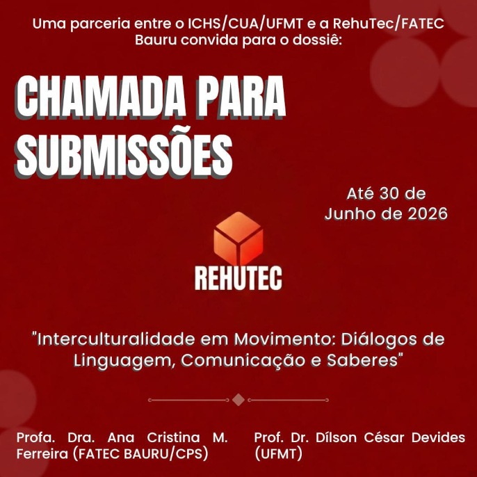 Este dossiê é uma iniciativa conjunta do ICHS/CUA (Instituto de Ciências Humanas e Sociais/Campus Universitário de Araguaia) da Universidade Federal de Mato Grosso (UFMT) e da RehuTec (Rede de Humanidades e Tecnologia) da FATEC Bauru, sob a organização dos professores: