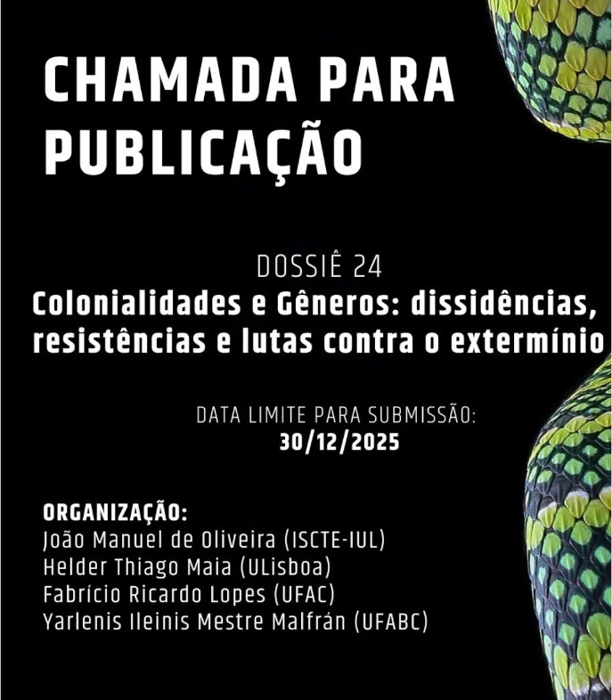 Em diálogo com perspectivas decoloniais, anticoloniais e pós-coloniais, o dossiê Colonialidades e Gêneros: dissidências, resistências e lutas contra o extermínio, está interessado em artigos, ensaios, poemas e ensaios visuais que articulem, a partir da América Latina e África, discussões em torno de: